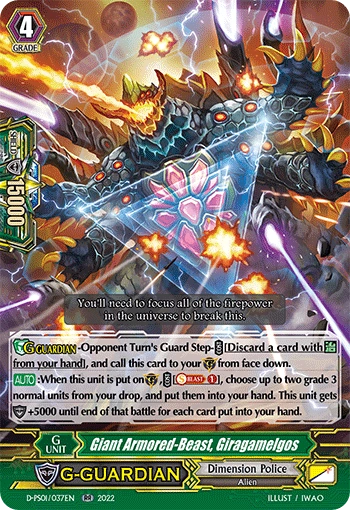 You’ll need to focus all of the firepower in the universe to break this. [G guardian]-Opponent Turn’s Guard Step-COST [Discard…