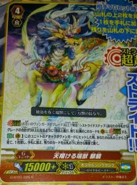 [ACT](VC):[Choose a face down card named “Divine Sacred Dragon, Saint Blow Dragon” from your G Zone, and turn it face up] This unit gets [Power]+3000 for each of your rear-guards until end of turn, if the number of face up cards in your G Zone is two or more, and the number of rear-guards you have is two or more, this unit gets [Critical]+1 until end of turn. This ability cannot be used for the rest of that turn.