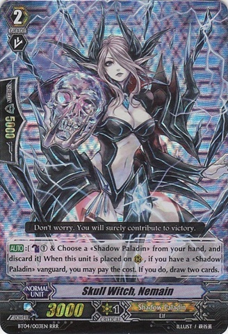Skull Witch, Nemain is the only returning woman from the original list. She is the first female card to catch my attention. Her power is low, but her looks are much higher than almost any unit before her first appearance. Nemain was a key card in Shadow Paladin decks from the original era.