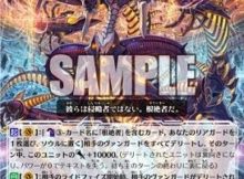 The third legend deck includes a 58 card deck, one deck box, a counter with Aichi’s photo, and two copies of Holy Dragon, Religious Soul Saver! The deck has sixteen new cards and two reprints. The Japanese edition will also include exclusive sleeves. I am disappointed that the English edition will not receive the sleeves. English players’ only option is to buy expensive packs of sleeves.
