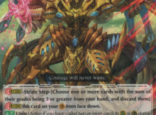 Finally, the second skill is makes Golden Dragon, Build Peak Dragon a large threat. He gains 3,000 power for each of your rear-guards. That is a total of 15,000 power from a full field! He provides a huge push in the early stages in a game. My opponent is almost pushed into a corner, but he or she can negate the attack with a perfect guard.