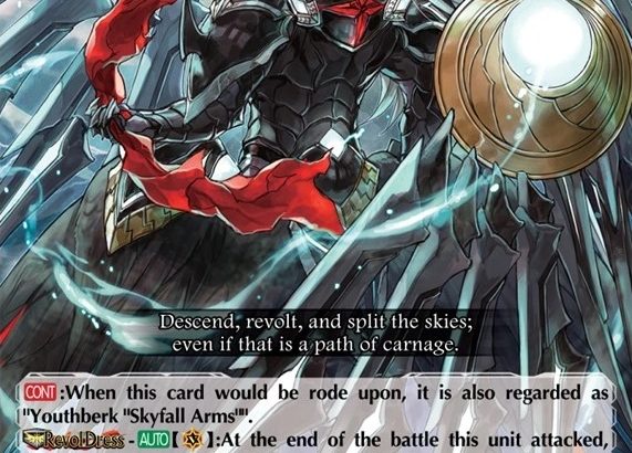 Youthberk “Protofall Arms” has a strong cast of support. The units in the archetype add consistency. Youthberk “RevolForm: Gust” and Youthberk “RevolForm: Zest” are two options for the ability of RevolDress. Knight of Ardent Light, Youth is a rear-guard with a respectable offense for the archetype.
