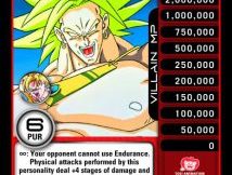 Broly starts with a continuous power that causes all opponent’s personalities to lose 7 stages when they advance a level. MPs get set at 3 above 0 while Allies just lose stages. If a personality has 0 stages and would lose stages, it’s taken as life card damage instead. He also buffs your physical attacks by +3 Stages, a very high value modifier to physical beatdown.