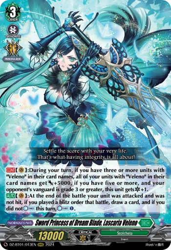 [AUTO](RC):When it attacks a vanguard, if your opponent’s hand has ten or more cards, this unit gets [Power]+20000/[Critical]+1 until end of that battle.