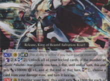 Knight of Calming Silence, Swithelm is a mediocre card for the premium format. This unit’s abilities are ineffective skills for the premium format. The first ability requires you to ride Salvation Wing Angel, Sarevsael on this card. The opponent can prevent this unit’s defensive ability if this unit is on the field.