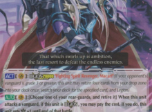 Furthermore, the deck with Diabolos, “Violence” Bruce requires many cards in the soul. It is essential to the strategy. Therefore, you want to return a rear-guard to the soul. Diabolos, “Violence” Bruce requires five cards in the soul for his ability because he soul blasts five cards for the cost to stand all rear-guards in the front row.